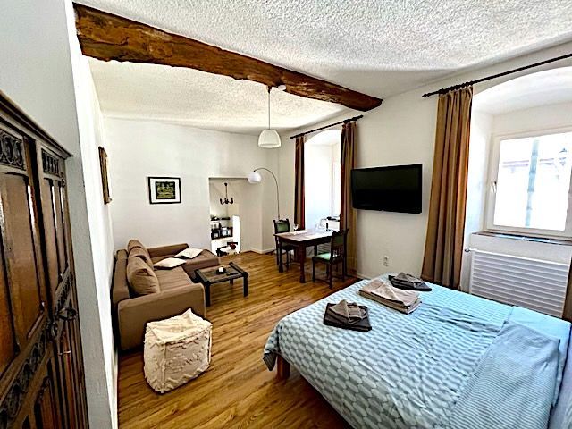 Das Apartment Georgstor bietet auf rund 55 qm einen großen und gemütlichen Schlaf- und Wohnraum mit komfortablem Doppelbett und einer Sitz- und Schlafcouch, so dass 2-3 Personen hier einfach nur relaxen können.